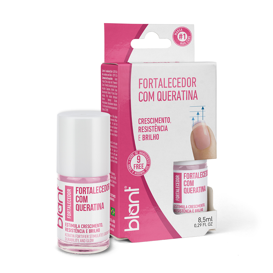 O Fortalecedor com Queratina é uma base de aspecto transparente, alto brilho e secagem rápida. Forma uma fina película de alta resistência e proteção às unhas, que além de regenerar partes danificadas, proporciona elasticidade e estimula o crescimento.